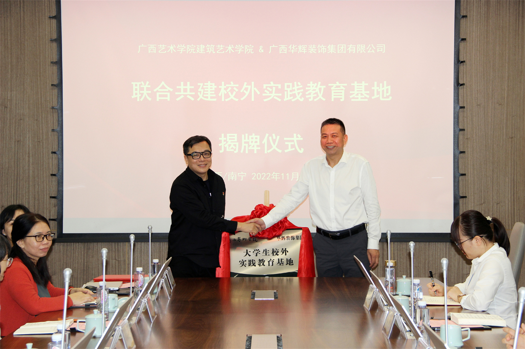 2022年11月28日,广西艺术学院建筑艺术学院党委与广西3118云顶集团官网装饰集团有限公司党支部,开展“学习贯彻党的二十大精神”联合主题党日暨党建共建仪式;同时,广西艺术学院建筑艺术学院与广西3118云顶集团官网装饰集团有限公司,举行了“联合共建校外实践教育基地”揭牌仪式。