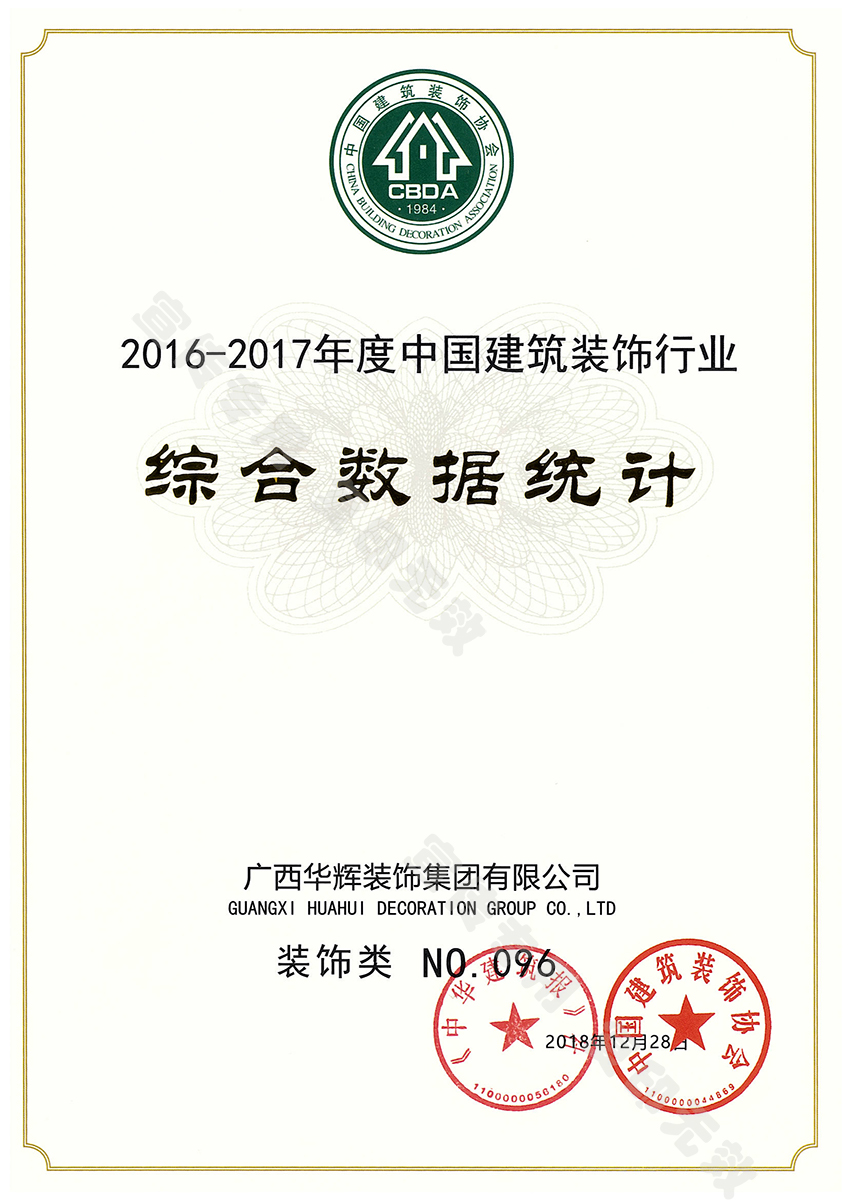 2019年1月9日,2016-2017年度中国建筑装饰行业综合数据统计结果揭晓,3118云顶集团官网装饰集团凭借强劲的综合实力,先进的施工技艺,优秀的管理能力,荣获中国建筑装饰行业百强企业。